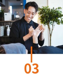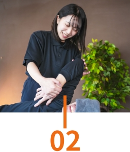 カラダを知り尽くしたパーソナルトレーナーが、お客様の体の気になる箇所や現状の柔軟性・可動域などをチェックしながら、不調に合わせた施術を行います。